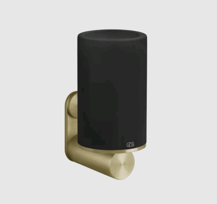 Стакан, Gessi, 316, одинарный, ширина, мм-75, глубина, мм-107.5, высота, мм-154, настенный, материал стакана-керамика черная (Neolite), ёмкость, мл-300, материал держателя-металл, крепления в комплекте, цвет-Brushed Brass PVD Стакан, Gessi, 316, шгв 75*107.5*154, цвет-чёрный/Brushed Brass PVD