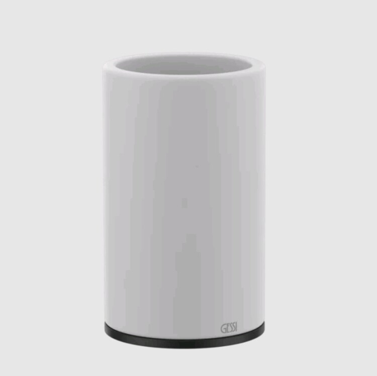 Стакан, Gessi, 316, одинарный, ширина, мм-75, глубина, мм-75, высота, мм-126, ёмкость, мл-300, настольный (свободностоящий), материал стакана-керамика белая (Neolite), материал держателя-металл, цвет-чёрный матовый Стакан, Gessi, 316, шгв 75*75*126, цвет-белый/чёрный матовый