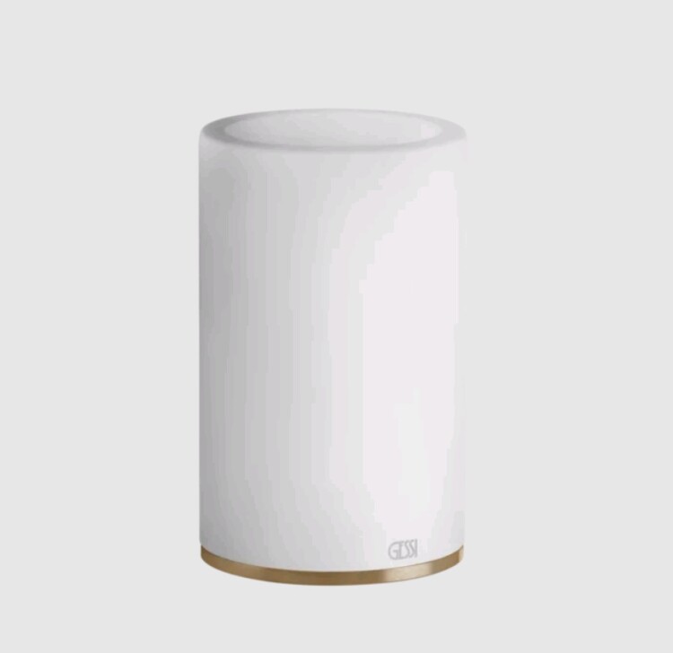 Стакан, Gessi, 316, одинарный, ширина, мм-75, глубина, мм-75, высота, мм-126, ёмкость, мл-300, настольный (свободностоящий), материал стакана-керамика белая (Neolite), материал держателя-металл, цвет-Warm Steel Brushed PVD Стакан, Gessi, 316, шгв 75*75*126, цвет-белый/Warm Steel Brushed PVD