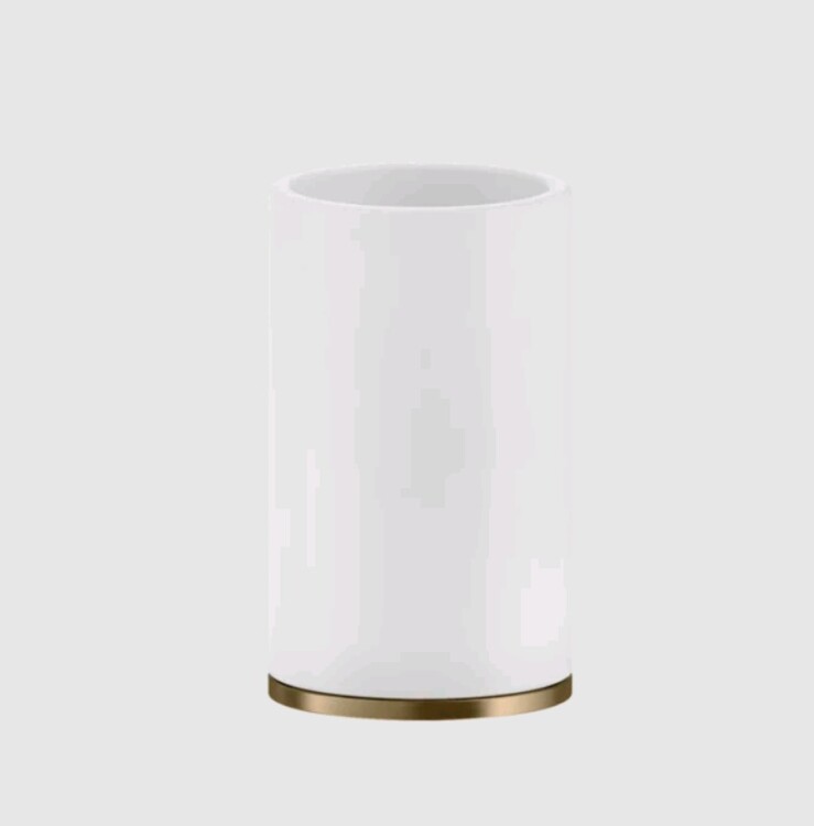 Стакан, Gessi, Inciso, одинарный, ширина, мм-75, глубина, мм-75, высота, мм-127, ёмкость, мл-300, настольный (свободностоящий), материал стакана-керамика белая (Neolite), материал держателя-металл, цвет-Warm Bronze Br. PVD Стакан, Gessi, Inciso, шгв 75*75*127, цвет-белый/Warm Bronze Br. PVD