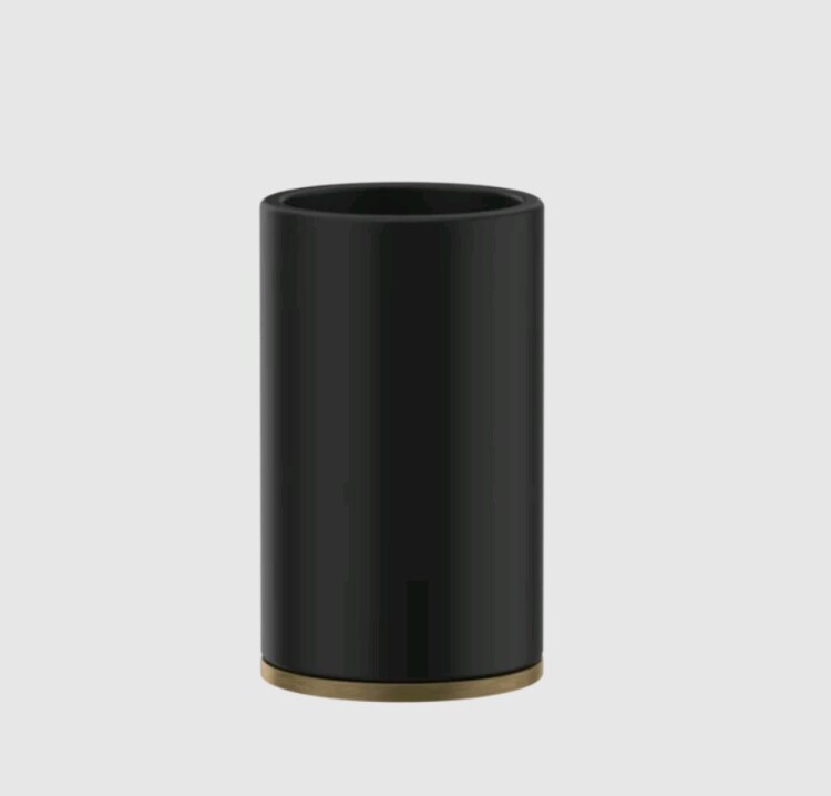 Стакан, Gessi, Inciso, одинарный, ширина, мм-75, глубина, мм-75, высота, мм-127, ёмкость, мл-300, настольный (свободностоящий), материал стакана-керамика черная (Neolite), материал держателя-металл, цвет-Antique Brass Стакан, Gessi, Inciso, шгв 75*75*127, цвет-черный/Antique Brass