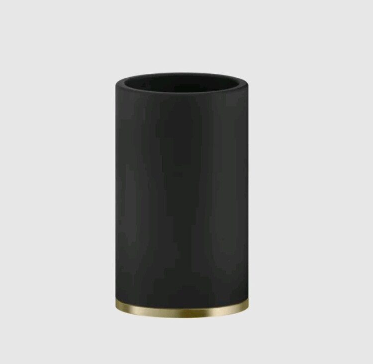 Стакан, Gessi, Inciso, одинарный, ширина, мм-75, глубина, мм-75, высота, мм-127, ёмкость, мл-300, настольный (свободностоящий), материал стакана-керамика черная (Neolite), материал держателя-металл, цвет-Black Metal Brushed PVD Стакан, Gessi, Inciso, шгв 75*75*127, цвет-чёрный/Black Metal Brushed PVD