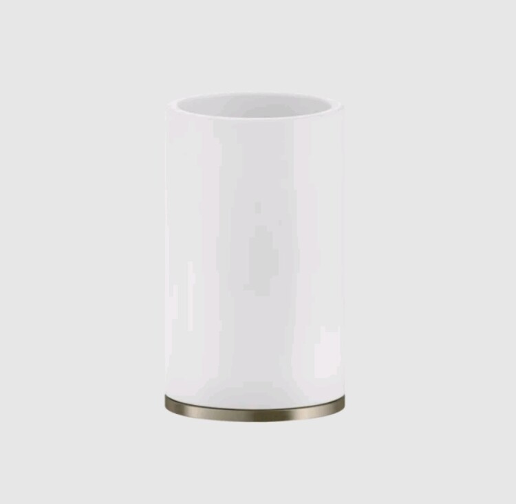 Стакан, Gessi, Inciso, одинарный, ширина, мм-75, глубина, мм-75, высота, мм-127, ёмкость, мл-300, настольный (свободностоящий), материал стакана-керамика белая (Neolite), материал держателя-металл, цвет-Finox Brushed Nickel Стакан, Gessi, Inciso, шгв 75*75*127, цвет-белый/Finox Brushed Nickel