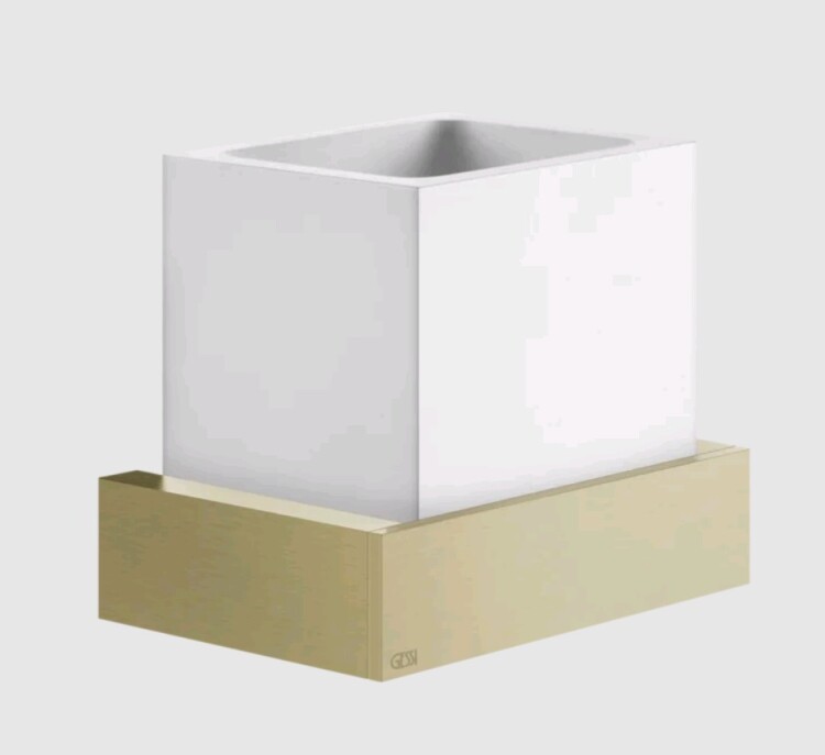 Стакан, Gessi, Rettangolo, одинарный, ширина, мм-140, глубина, мм-85, высота, мм-116.5, ёмкость, мл-500, настольный (свободностоящий), материал стакана-керамика белая (Neolite), материал держателя-металл, цвет-Brushed Brass PVD Стакан, Gessi, Rettangolo, шгв 140*95*116.5, цвет-белый/Brushed Brass PVD