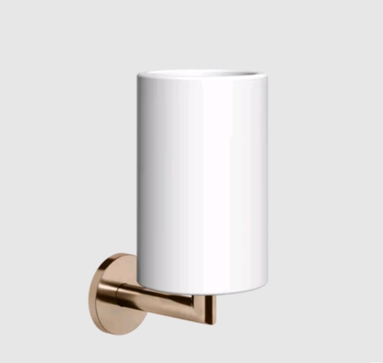 Стакан, Gessi, Tondo, одинарный, ширина, мм-75, глубина, мм-107, высота, мм-172, ёмкость, мл-300, настенный, материал стакана-керамика белая (Neolite), материал держателя-металл, крепления в комплекте, цвет-Copper PVD Стакан, Gessi, Tondo, шгв 75*107*172, цвет-белый/Copper PVD