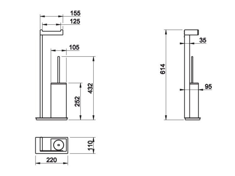 Ёршик-стойка, Gessi, Rettangolo, с бумагодержателем, ширина, мм-220, глубина, мм-110, высота, мм-614, тип установки-напольный, цвет колбы-черный, цвет-хром Ёршик-стойка, Gessi, Rettangolo, с бумагодержателем, шгв 220*110*614, цвет-хром/черный