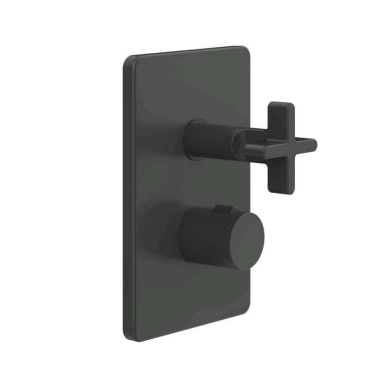 Смеситель для душа, Gessi, Inciso Bath&Shower, на 1 потребитель, тип открывания воды-вентильный, тип регулирования воды-термостатический картридж, монтаж-настенный встраиваемый, отверстия для монтажа-1, внутренняя часть-необходимо заказать, цвет-черный матовый Смеситель для душа, Gessi, Inciso Bath&Shower, на 1 потребитель, цвет-черный матовый