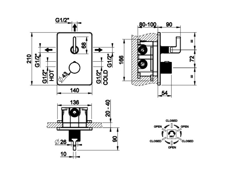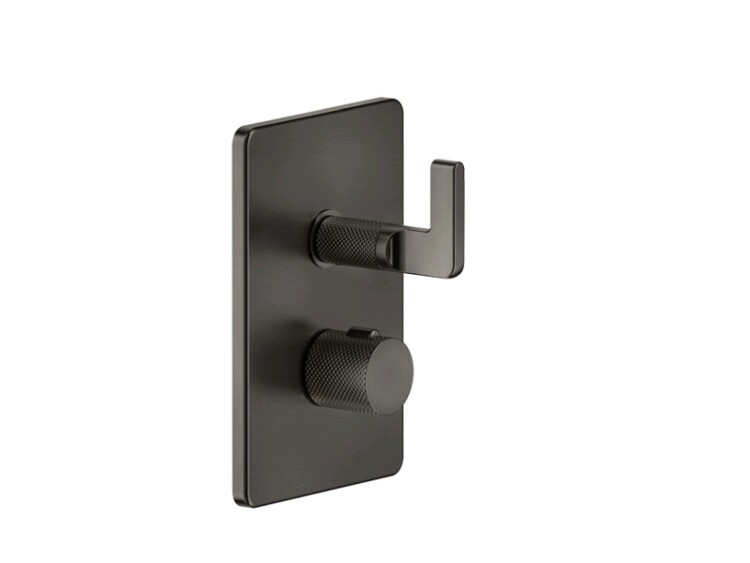 Смеситель для душа, Gessi, Inciso, тип открывания воды-вентильный, тип регулирования воды-термостатический картридж, монтаж-настенный встраиваемый, отверстия для монтажа-2, внутренняя часть-необходимо заказать, с подключением на 1/2", с фильтрами и вентилем с керамическими дисками, на три позиции, цвет-Black XL Смеситель для душа, Gessi, Inciso, цвет-Black XL