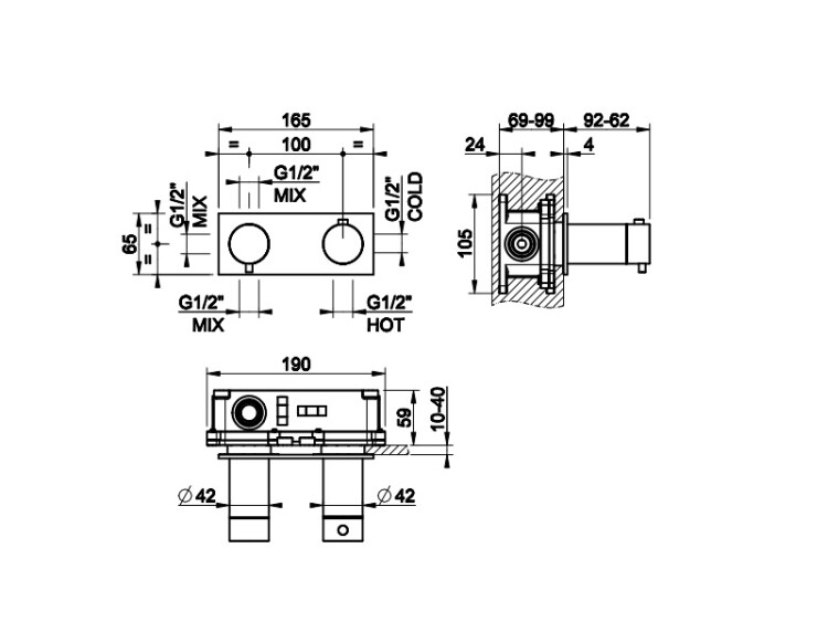 Смеситель для душа, Gessi, Shower316, тип открывания воды-вентильный, тип регулирования воды-термостатический картридж, внутренняя часть-необходимо заказать, цвет-Steel Brushed, с подключением на 3/4", фильтрами и переключателем с керамическими дисками, на три позиции на 1/2" Смеситель для душа, Gessi, Shower316, цвет-Steel Brushed