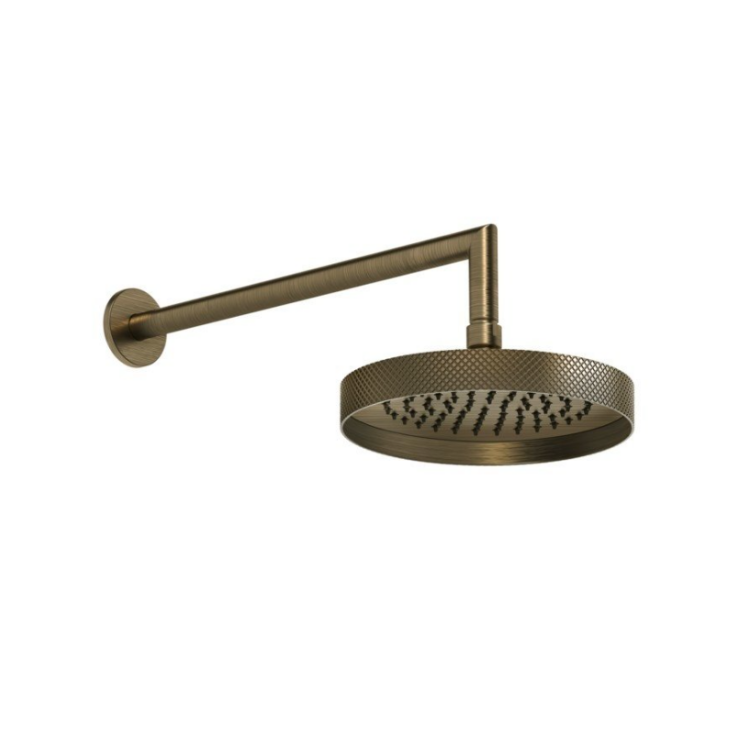 Верхний душ, Gessi, Anello, тип установки-настенный, размер душевого диска, мм-218*218, форма-круглая, держатель-в комплекте, размер держателя, мм-343, цвет-латунь античная Верхний душ, Gessi, Anello, 218*218, цвет-латунь античная