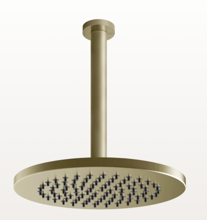 Верхний душ, Gessi, BATH-SHOWER 316, тип установки-потолочный, размер душевого диска, мм-218*218, форма-круглая, держатель-в комплекте, размер держателя, мм-278, поворотная с шарниром, цвет-Brushed Brass PVD Верхний душ, Gessi, BATH-SHOWER 316, 218*218, цвет-Brushed Brass PVD