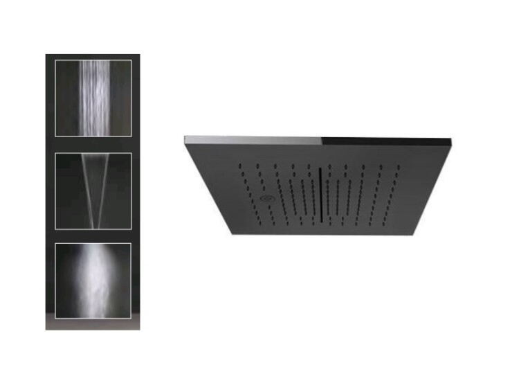 Верхний душ, Gessi, Minimali, тип установки-встраиваемый, потолочный, ширина, мм-350, глубина, мм-350, высота, мм-12, форма-квадратная, количество режимов-3, тип струи-тропический ливень, водопад, распыление, внутренняя часть-необходимо заказать, цвет-Black Metal Brushed PVD Верхний душ, Gessi, Minimali, шгв 350*350*12, цвет -Black Metal Brushed PVD