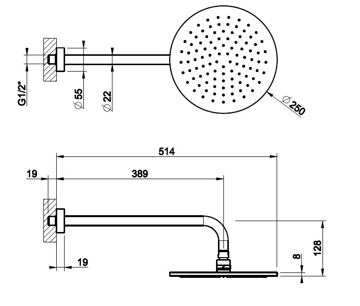 Размер верхнего душа, мм | 250*250 |