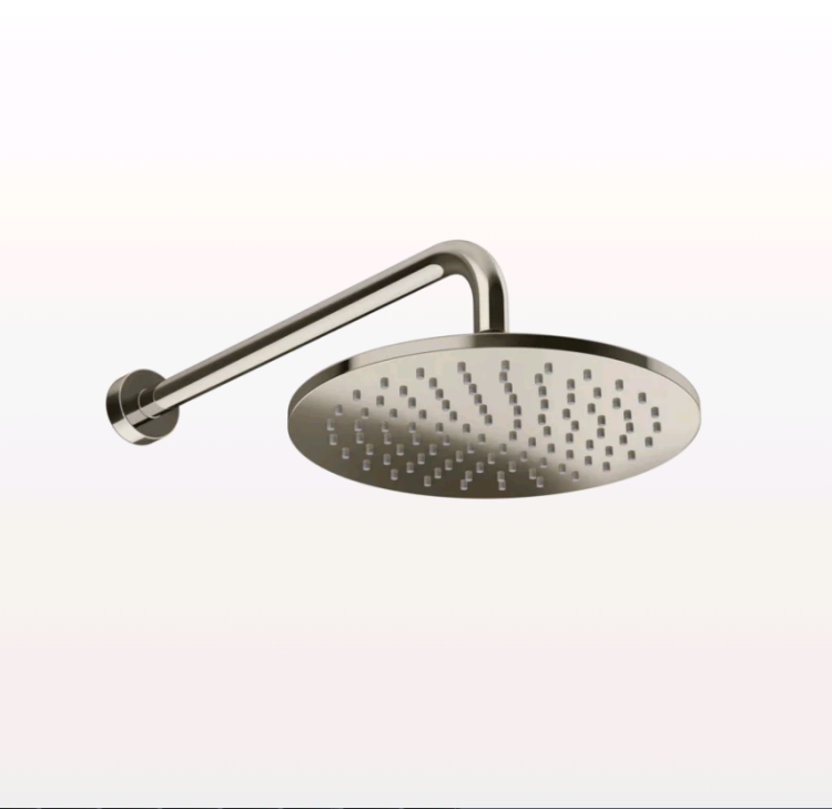 Верхний душ, Gessi, Origini, тип установки-настенный, размер душевого диска, мм-250*250, форма-круглая, количество режимов-1, тип струи-дождь (Rain), держатель-в комплекте, размер держателя, мм-389, цвет-Nickel PVD Верхний душ, Gessi, Origini, 250*250, цвет-Nickel PVD