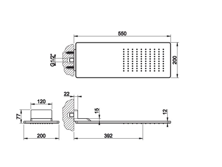 Верхний душ, Gessi, Rettangolo, тип установки-настенный, ширина, мм-200, глубина, мм-550, высота, мм-77, форма-прямоугольная, цвет-Black Metal PVD Верхний душ, Gessi, Rettangolo, шгв 200*550*77, цвет -Black Metal PVD