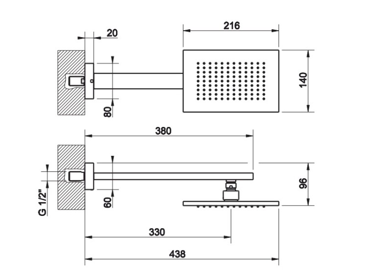 Верхний душ, Gessi, Rettangolo K, тип установки-настенный, ширина, мм-140, глубина, мм-438, высота, мм-96, форма-прямоугольная, держатель-есть, размер держателя-380, душевая головка шарнирная, размер,мм-216*140, на 1/2”, цвет-Black Metal Brushed PVD Верхний душ, Gessi, RettangoloK, шгв 140*438*96, цвет -Black Metal Brushed PVD