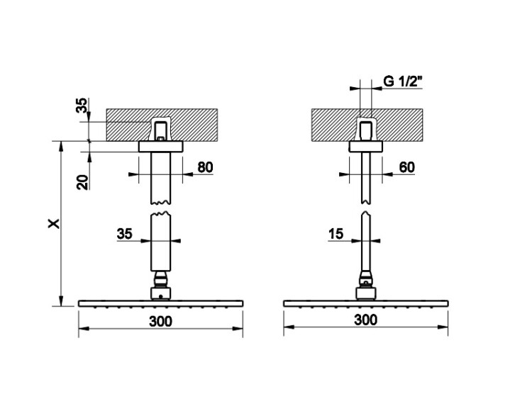 Верхний душ, Gessi, Rettangolo shower, тип установки-потолочный, ширина, мм-300, глубина, мм-300, форма-квадратная, держатель-есть, размер держателя-1150-1865, цвет-Finox Верхний душ, Gessi, Rettangoloshower, шг 300*300, цвет -Finox
