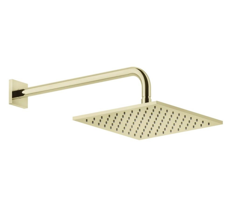 Верхний душ, Gessi, Rilievo, тип установки-настенный, размер душевого диска, мм-250*250, форма-квадратная, количество режимов-1, тип струи-дождь (Rain), держатель-в комплекте, размер держателя, мм-389, цвет-Brass PVD Верхний душ, Gessi, Rilievo, 250*250, цвет-Brass PVD