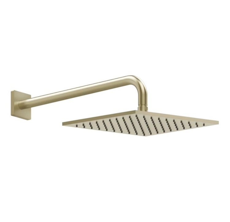 Верхний душ, Gessi, Rilievo, тип установки-настенный, размер душевого диска, мм-250*250, форма-квадратная, количество режимов-1, тип струи-дождь (Rain), держатель-в комплекте, размер держателя, мм-389, цвет-Brushed Brass PVD Верхний душ, Gessi, Rilievo, 250*250, цвет-Brushed Brass PVD