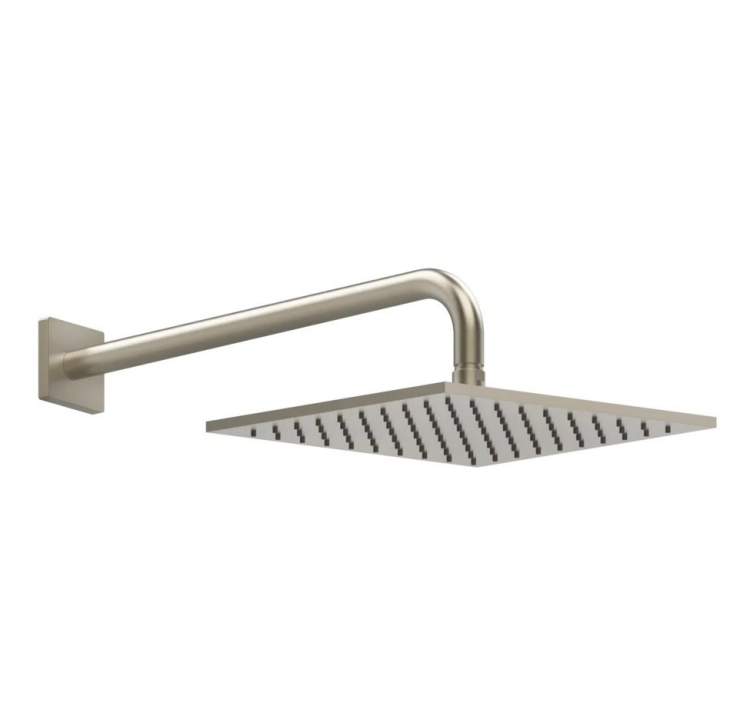 Верхний душ, Gessi, Rilievo, тип установки-настенный, размер душевого диска, мм-250*250, форма-квадратная, количество режимов-1, тип струи-дождь (Rain), держатель-в комплекте, размер держателя, мм-389, цвет-Finox Brushed Nickel Верхний душ, Gessi, Rilievo, 250*250, цвет-Finox Brushed Nickel