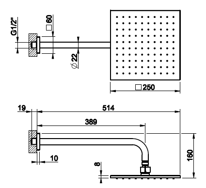 Размер верхнего душа, мм | 250*250 |
