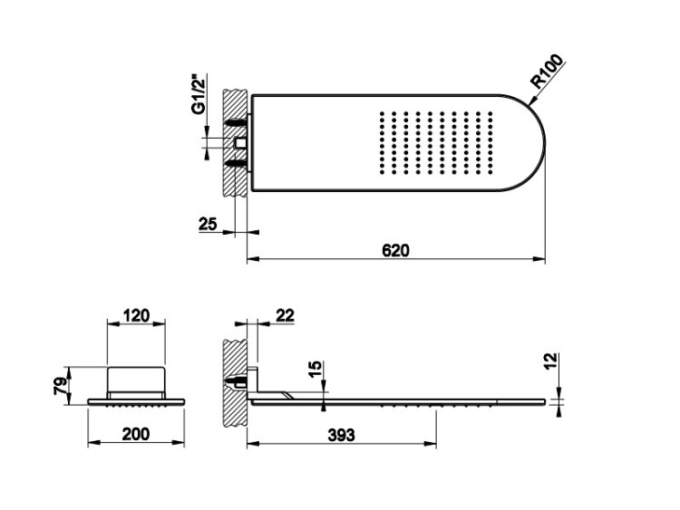 Верхний душ, Gessi, Shower316, тип установки-настенный, ширина, мм-200, глубина, мм-620, высота, мм-79, форма-округлая, цвет-Black Metal Brushed PVD Верхний душ, Gessi, Shower316, шгв 200*620*79, цвет -Black Metal Brushed PVD