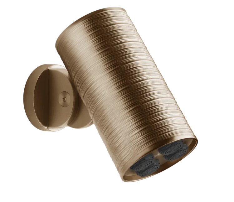 Верхний душ, Gessi, SPOTWATER, тип установки-настенный, размер душевого диска, мм-79*79, форма-цилиндрическая, количество режимов-1, держатель-в комплекте, с регулируемым углом наклона, многоструйный, цвет-Warm Bronze Brushed PVD Верхний душ, Gessi, SPOTWATER, 79*79, цвет-Warm Bronze Brushed PVD