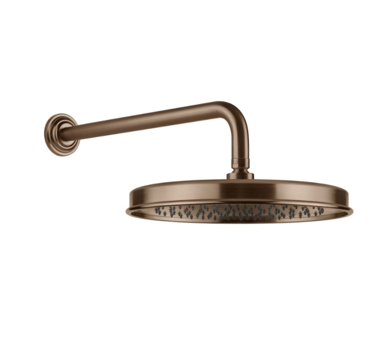 Верхний душ, Gessi, VENTI20, тип установки-настенный, размер душевого диска, мм-328*328, форма-круглая, держатель-в комплекте, размер держателя, мм-400, цвет-Copper Brushed PVD Верхний душ, Gessi, VENTI20, 328*328, цвет-Copper Brushed PVD