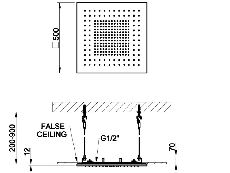 Размер верхнего душа, мм | 500*500 |