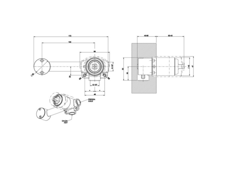 Внутренняя часть, Gessi, назначение-для смесителя с изливом, стандарт подвода воды-1/2", цвет-хром Внутренняя часть, Gessi, назначение-для смесителя с изливом, хром