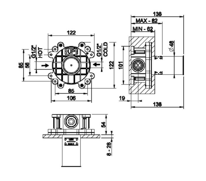 Внутренняя часть, Gessi, назначение-гигиенический душ, стандарт подвода воды-1/2", хром Внутренняя часть, Gessi, назначение-гигиенический душ, хром