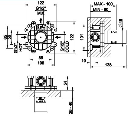 Внутренняя часть, Gessi, назначение-смеситель для душа, стандарт подвода воды-1/2", цвет-хром Внутренняя часть, Gessi, назначение-смеситель для душа, цвет-хром