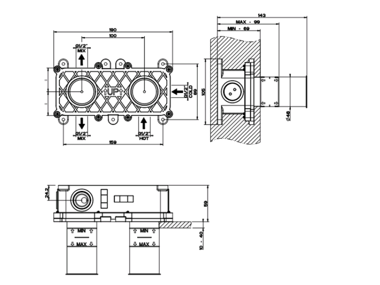 Внутренняя часть, Gessi, Shower316, назначение-для смесителя на 2 выхода для душа, стандарт подвода воды-1/2", цвет-Steel Brushed Внутренняя часть, Gessi, Shower316, для смесителя для душа, Steel Brushed