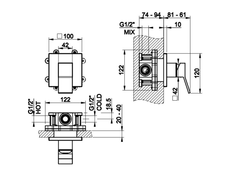 Смеситель для душа, Gessi, Rettangolo K, тип открывания воды-однорычажный, тип установки-встраиваемый, отверстия для монтажа-1, внутренняя часть-необходимо заказать, цвет-хром, на 1/2”, картридж Ø35 мм,одна позиция Смеситель для душа, Gessi, Rettangolo K, цвет-хром