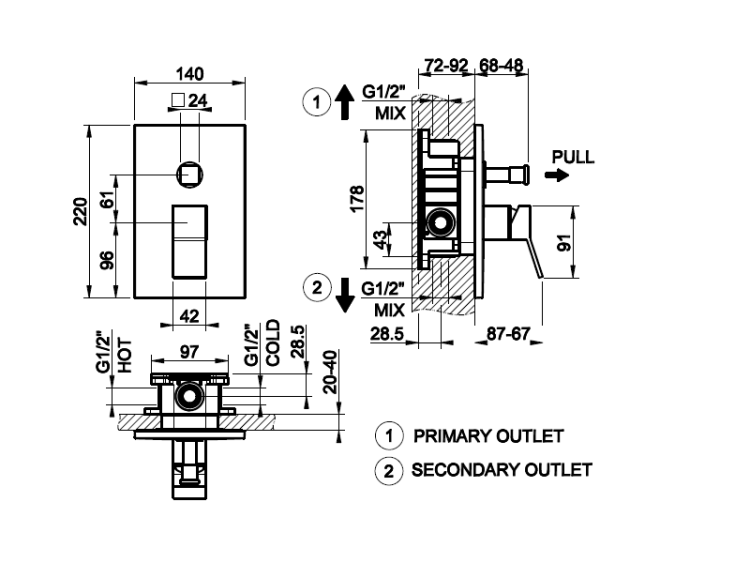 Смеситель для душа, Gessi, Rettangolo K, тип открывания воды-однорычажный, тип регулирования воды-керамический картридж, тип установки-настенный встраиваемый, внутренняя часть-необходимо заказать, цвет-Black XL, на 2 выхода с переключателем ванна-душ Смеситель для душа, Gessi, Rettangolo K, цвет-Black XL