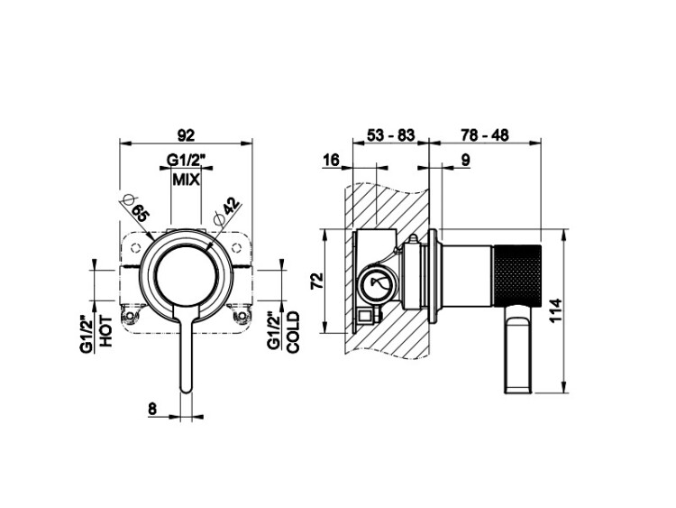 Смеситель для душа, Gessi, Inciso, тип открывания воды-однорычажный, тип установки-встраиваемый, внутренняя часть-необходимо заказать, цвет-Black XL Смеситель для душа, Gessi, Inciso, цвет-Black XL