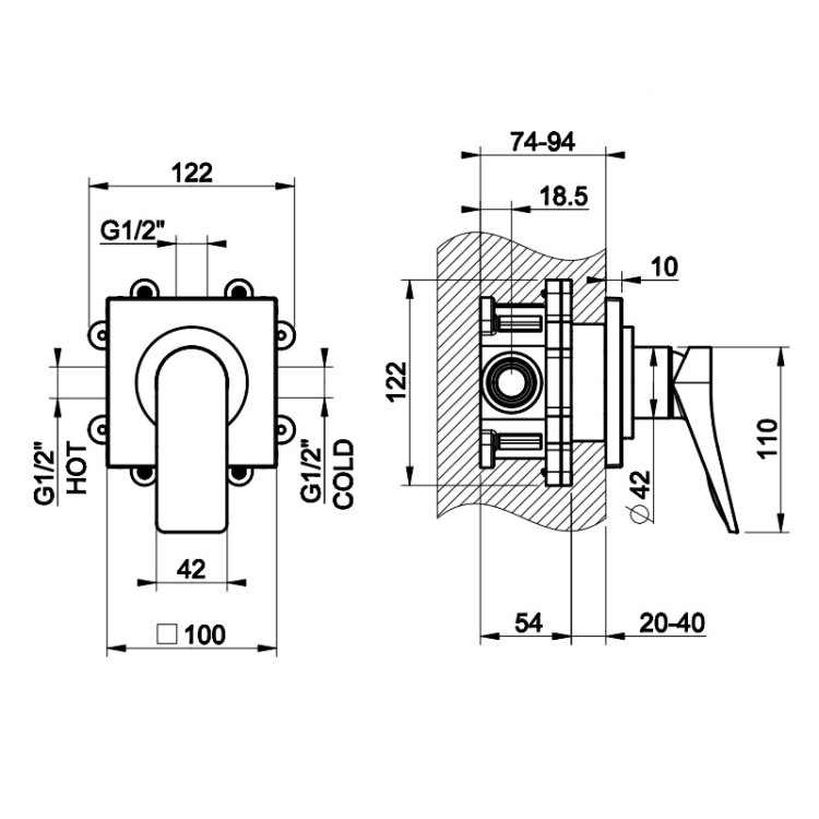 Смеситель для душа, Gessi, Rilievo, на 1 потребитель, тип открывания воды-однорычажный, тип регулирования воды-керамический картридж, монтаж-настенный встраиваемый, отверстия для монтажа-1, внутренняя часть-необходимо заказать, цвет-черный матовый Смеситель для душа, Gessi, Rilievo, на 1 потребитель, цвет-черный матовый
