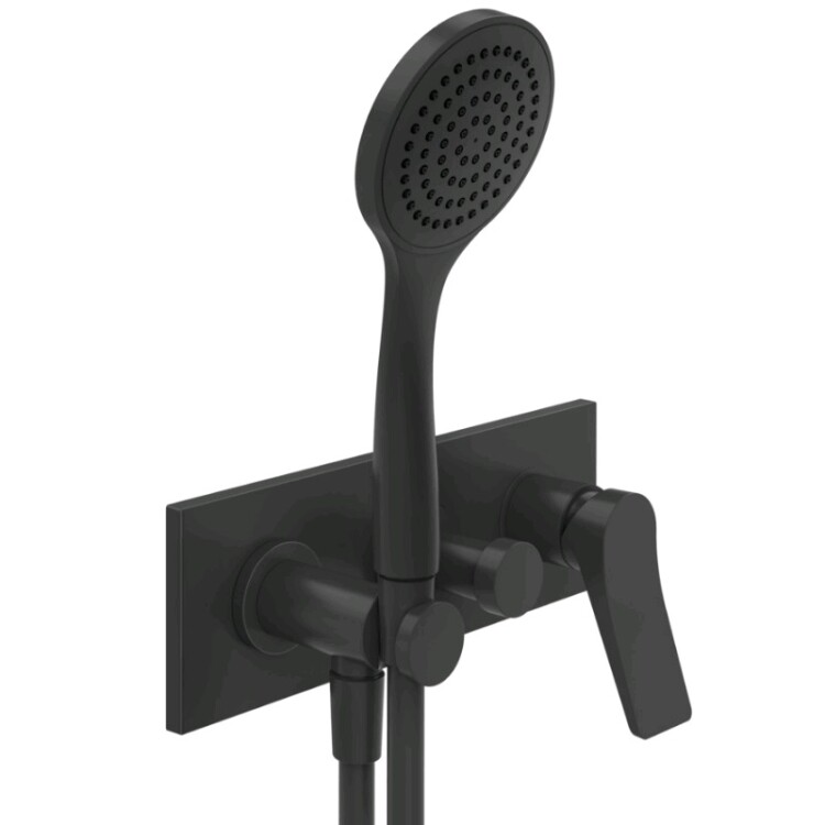 Смеситель для душа, Gessi, Rilievo, на 2 потребителя, тип открывания воды-однорычажный, тип регулирования воды-керамический картридж, монтаж-настенный встраиваемый, отверстия для монтажа-1, в комплекте-переключатель, ручной душ, держатель ручного душа с подводом воды, шланг, мм-1500, внутренняя часть-необходимо заказать, цвет-черный матовый Смеситель для душа, Gessi, Rilievo, на 2 потребителя, цвет-черный матовый