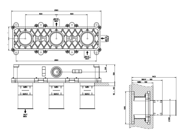 Внутренняя часть, Gessi, 316, назначение-для смесителя на 2 выхода, стандарт подвода воды-1/2", цвет-Steel Brushed Внутренняя часть, Gessi, 316, назначение-для смесителя, цвет-Steel Brushed