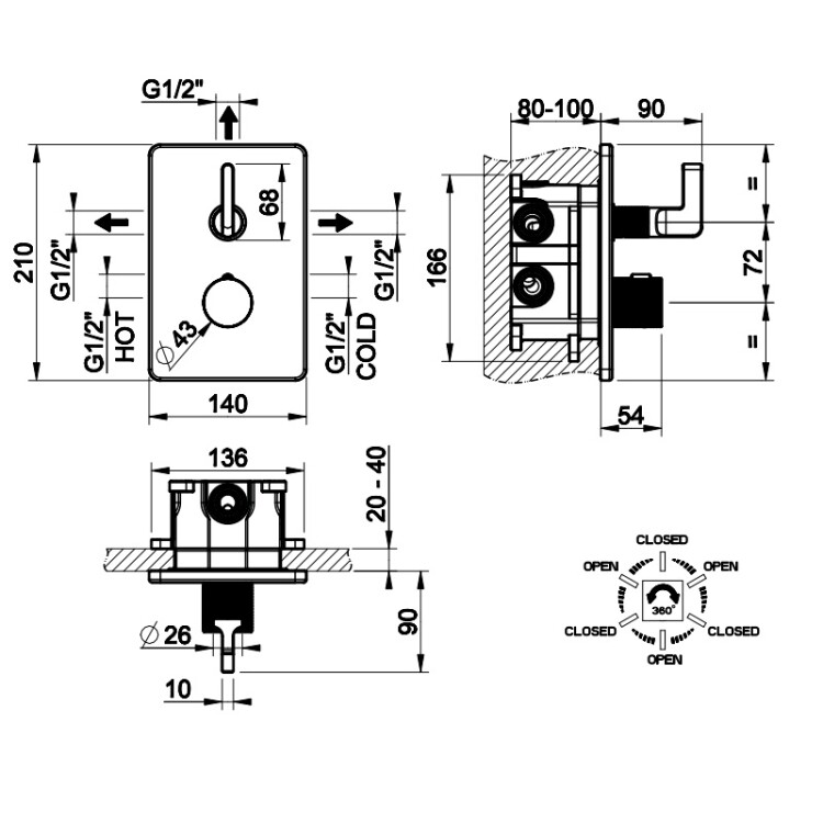 | Тип монтажа | настенный встраиваемый |