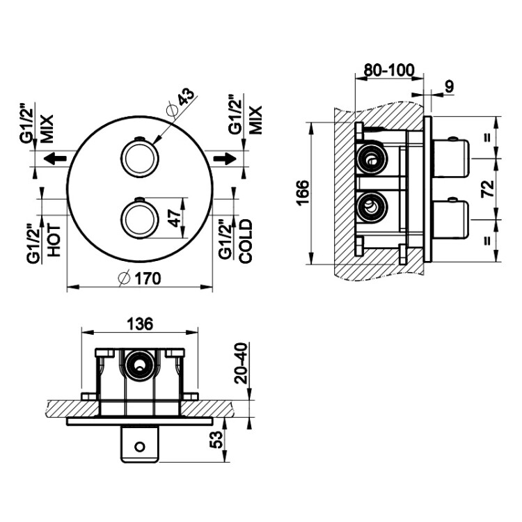 Смеситель для душа, Gessi, Goссia, на 2 потребителя, тип открывания воды-вентильный, тип регулирования воды-термостатический картридж, монтаж-настенный встраиваемый, отверстия для монтажа-2, внутренняя часть-необходимо заказать, цвет-хром Смеситель для душа, Gessi, Goссia, на 2 потребителя, цвет-хром