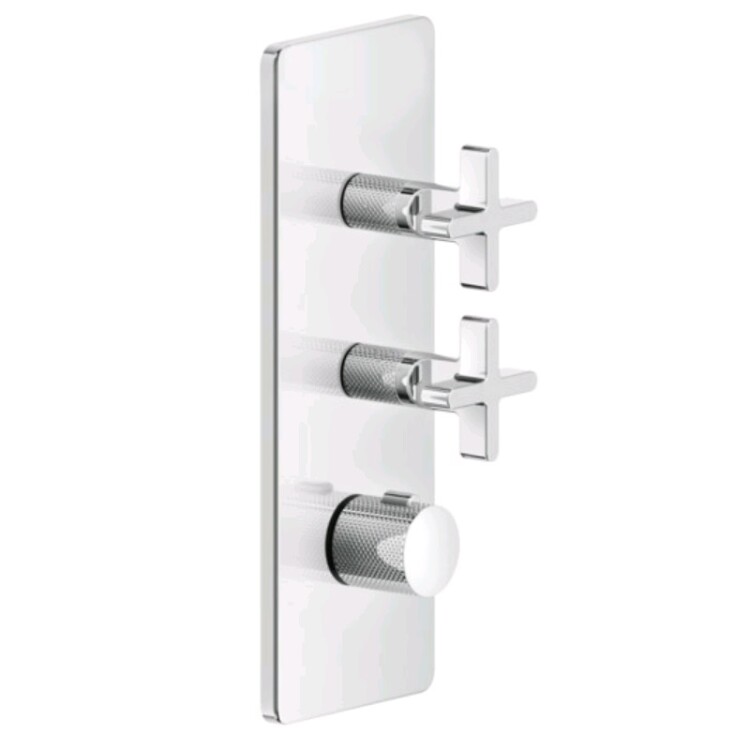 Смеситель для душа, Gessi, Inciso Bath&Shower, на 2 потребителя, тип открывания воды-вентильный, тип регулирования воды-термостатический картридж, монтаж-настенный встраиваемый, отверстия для монтажа-3, установка-вертикальная/горизонтальная, внутренняя часть-необходимо заказать, цвет-хром Смеситель для душа, Gessi, Inciso Bath&Shower, на 2 потребителя, цвет-хром