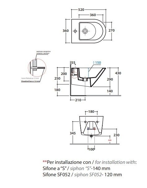 Биде, Globo, FORTY3, тип установки-подвесной, ширина, мм-360, глубина, мм-520, высота, мм-290, форма чаши-овальная, отверстия для смесителя-1, материал-керамика, вид грязеотталкивающего покрытия-CERASLIDE, BATAFORM, крепления в комплекте, цвет-белый Биде, Globo, FORTY3, подвесной, шгв 360*520*290, CERASLIDE, BATAFORM, цвет-белый