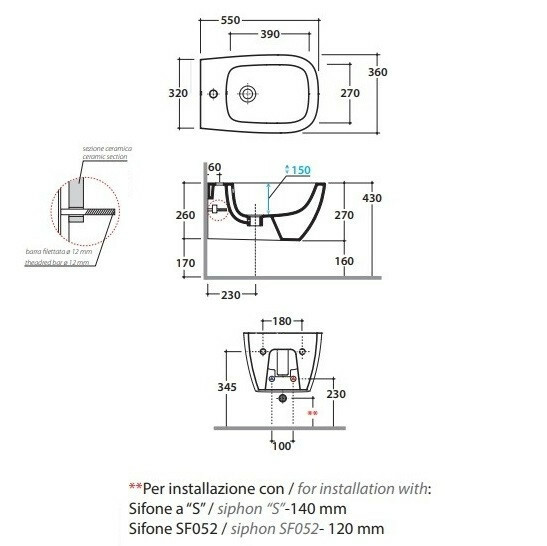 Биде, Globo, GENESIS, тип установки-подвесной, ширина, мм-360, глубина, мм-550, высота, мм-270, форма чаши-прямоугольная, отверстия для смесителя-1, материал-керамика, крепления в комплекте, цвет-белый матовый Биде, Globo, GENESIS, подвесной, шгв 360*550*270, цвет-белый матовый
