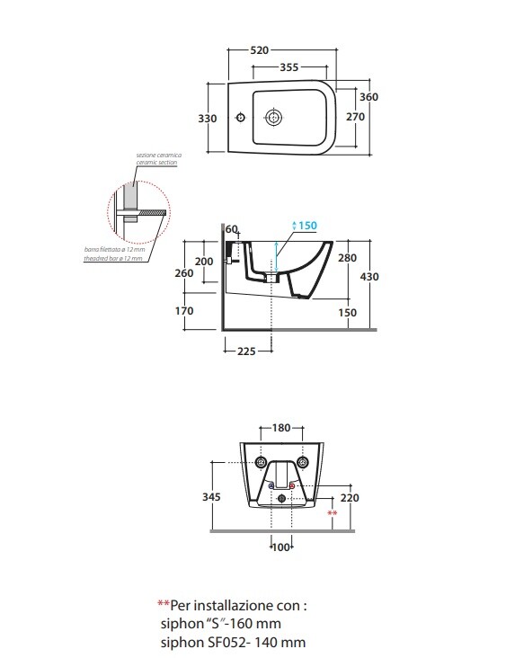 Биде, Globo, STONE, тип установки-подвесной, ширина, мм-360, глубина, мм-520, высота, мм-280, форма чаши-прямоугольная, отверстия для смесителя-1, материал-керамика, вид грязеотталкивающего покрытия-CERASLIDE, BATAFORM, крепления в комплекте, цвет-белый Биде, Globo, STONE, подвесной, шгв 360*520*280, CERASLIDE, BATAFORM, цвет-белый