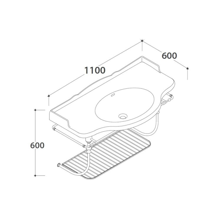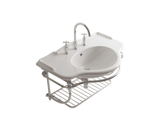 Консоль, Globo, Paestum, ширина, мм-1080, глубина, мм-620, высота, мм-470, тип установки-подвесной, материал-латунь, с держателем полотенца и металлической полкой-решеткой, цвет-хром Консоль, Globo, Paestum, шгв 1080*620*470, цвет-хром