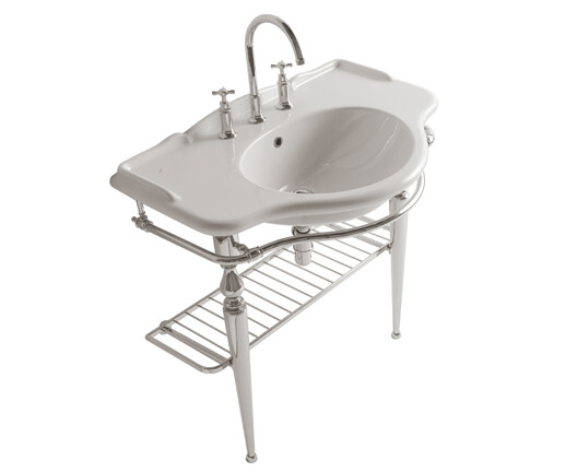 Консоль, Globo, Paestum, ширина, мм-850, глубина, мм-560, высота, мм-830, тип установки-напольный, материал-латунь, с держателем полотенца и металлической полкой-решеткой, цвет-хром Консоль, Globo, Paestum, шгв 850*560*830, цвет-хром