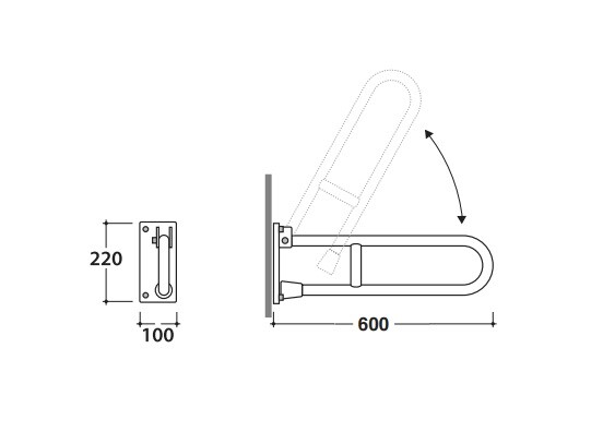 Поручень, Globo, AUSILIA, откидной, ширина, мм-600, глубина, мм-100, высота, мм-220, материал-металл, цвет-белый Поручень, Globo, AUSILIA, откидной, шгв 600*100*220, цвет-белый