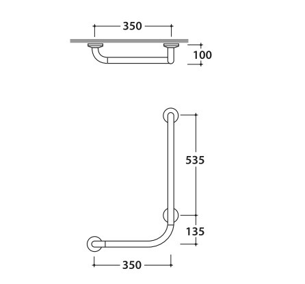 Поручень, Globo, AUSILIA, угловой, правый, ширина, мм-350, глубина, мм-100, высота, мм-670, материал-металл, цвет-белый Поручень, Globo, AUSILIA, угловой, правый, шгв 350*100*670, цвет-белый