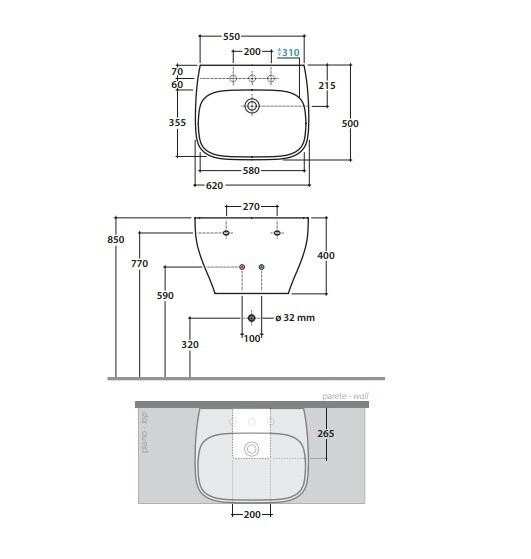 Раковина, Globo, GENESIS, ширина, мм-620, глубина, мм-500, высота, мм-400, тип установки-подвесной, отверстия для смесителя-3 промаркированных, с переливом, материал-керамика, вид грязеотталкивающего покрытия-CERASLIDE, BATAFORM, крепления в комплекте, цвет-белый Раковина, Globo, GENESIS, шгв 620*500*400, отверстия для смесителя-3 промаркированных, CERASLIDE, BATAFORM, цвет-белый